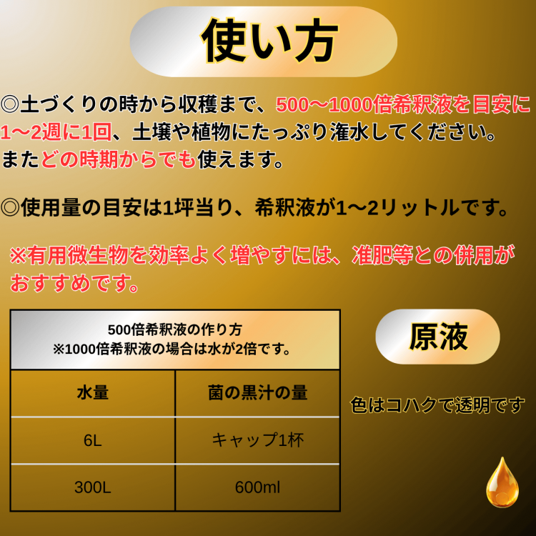☆使用方法:500倍を基準に希釈して1〜2週間毎に3〜4回使用します。