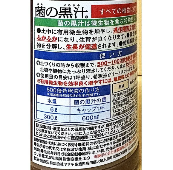 菌の黒汁とは連作障害の改善や植物の生長促進を目的とした光合成細菌を含む菌体資材です。