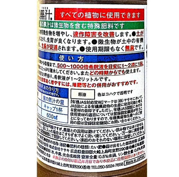 ●原料/水、牛糞、光合成細菌●窒素全量0.5%未満、リン酸全量0.5%未満、カリ全量0.5%未満