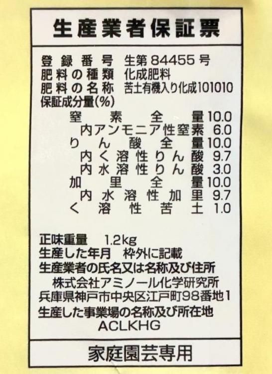 成分:窒素10%、リン酸10%、カリ10%、苦土1.0%